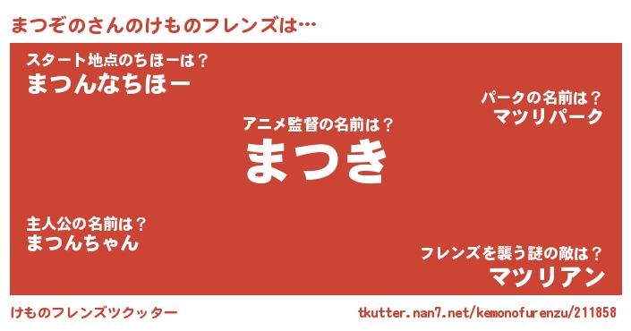 | 男性向けラノベタイトル風あだ名 | 『まつぞのに滅ぼされるだけの簡単なお仕事です』 |