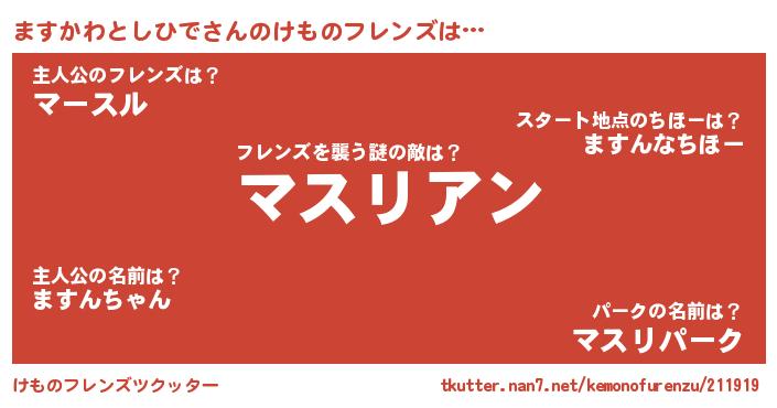 | 男性向けラノベタイトル風あだ名 | 『おまえをオタクにしてやるから、俺をますかわとしひでにしてくれ! 』 |