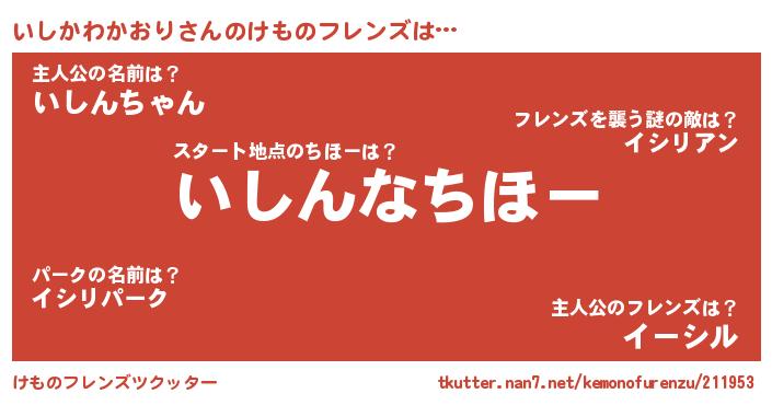 | 2回繰り返すあだ名 | 『いいしし』『いしいし』『ちらちら』 |