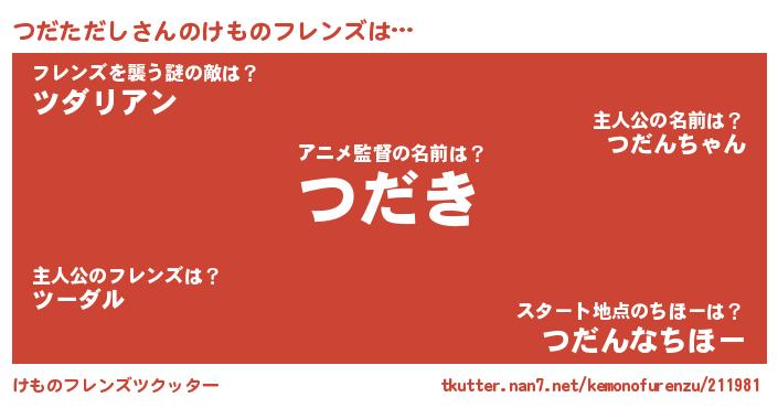 | ポケモン風あだ名 | 『ヒツダタダシ』『ツックウザ』 |