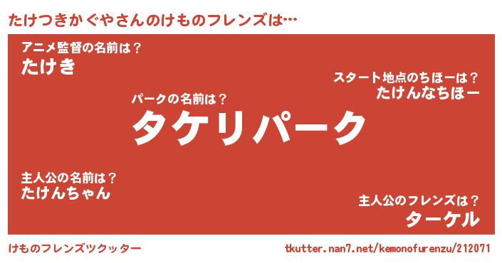 | ポケモン風あだ名 | 『タケセウス』『ヒタケツキカグヤ』 |