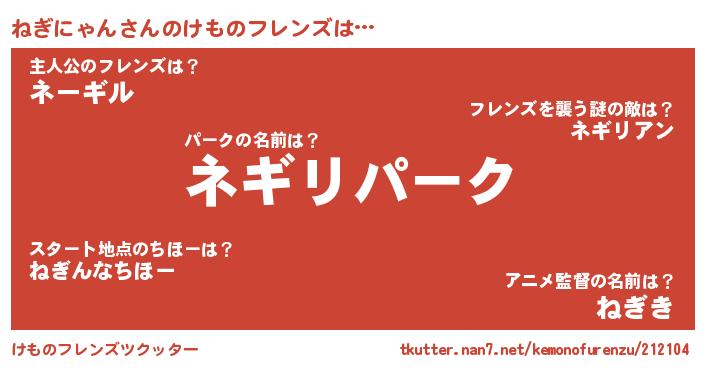 | 男性向けラノベタイトル風あだ名 | 『この素晴らしい世界にねぎにゃんを!』 |