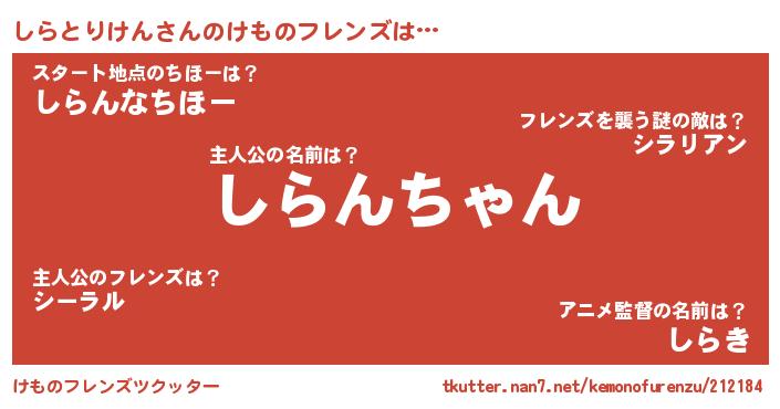 | 肩書あだ名 | 『しらとりけん社長』『しらとりけん艦長』 |