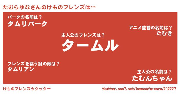 | ポケモン風あだ名 | 『タムゴンZ』『ゼニタム』『タームイ』 |