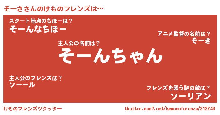 | 2回繰り返すあだ名 | 『そーそー』『そそーー』『わざわざ』 |