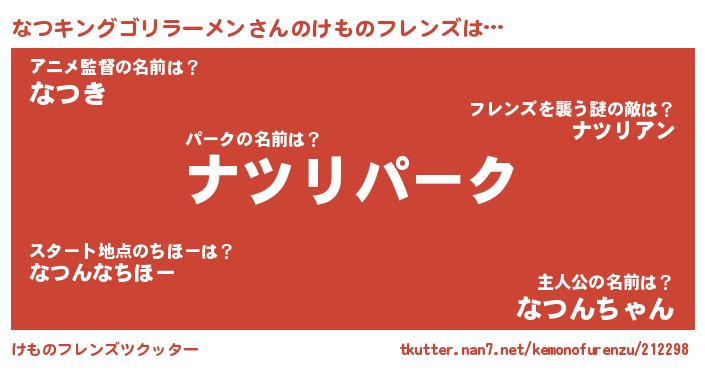 | 意味不明あだ名 | 『住所不定無職なつキングゴリラーメン(65歳)』 |