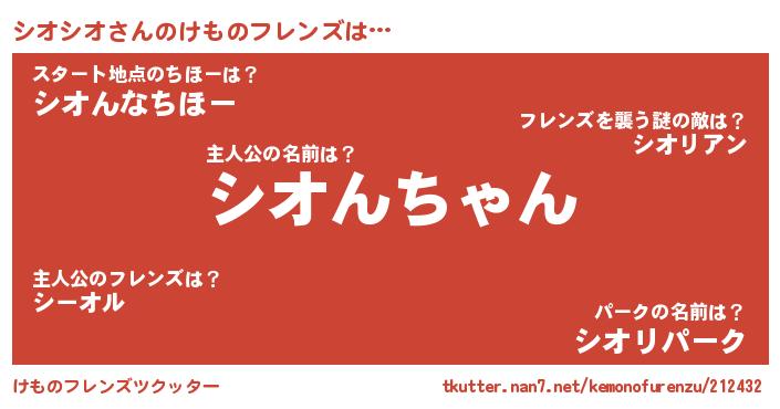 | 2回繰り返すあだ名 | 『シオシオ』『すーすー』『シシオオ』 |