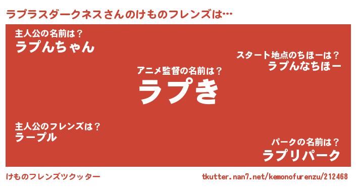 | ポケモン風あだ名 | 『ヒラプラスダークネス』『ラプチュウ』 |