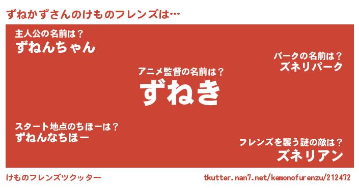 | 男性向けラノベタイトル風あだ名 | 『ずねかずに滅ぼされるだけの簡単なお仕事です』 |