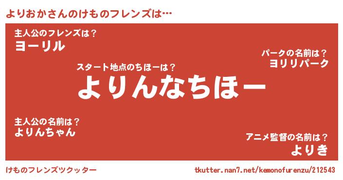 | 2回繰り返すあだ名 | 『よよりり』『わんわん』『ちくちく』 |