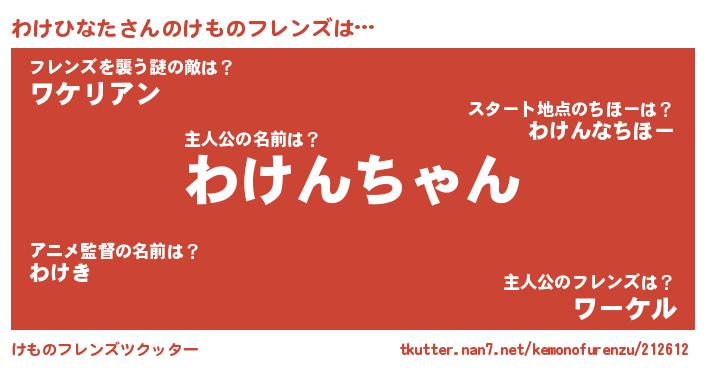 | 2回繰り返すあだ名 | 『わけわけ』『ふらふら』『わわけけ』 |