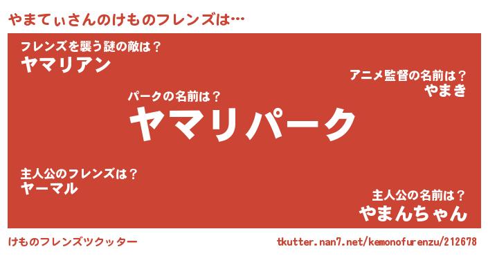 | 意味不明あだ名 | 『ヨモギ科やまてぃ属』『自称やまてぃ』 |