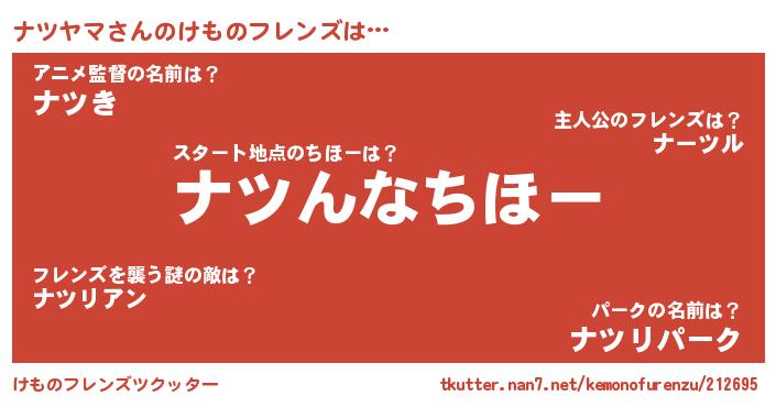 | ファンタジー風あだ名 | 『エターナルナツヤマー』『ゼナツトゥ』 |