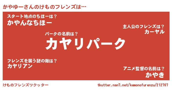 | ファンタジー風あだ名 | 『ゼカヤトゥ』『エターナルカヤユーー』 |