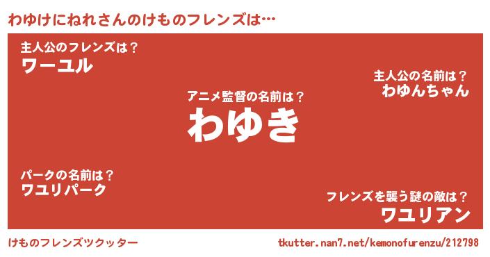 | ポケモン風あだ名 | 『ヒワユケニネレ』『ワーユイ』 |