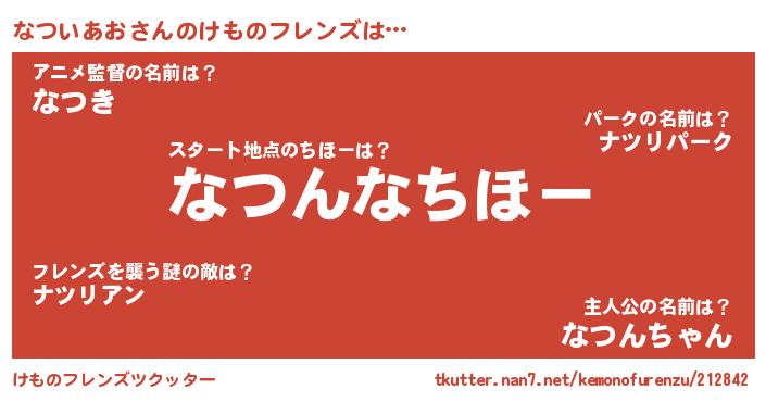 | ポケモン風あだ名 | 『ナツイダネ』『ナーツイ』 |