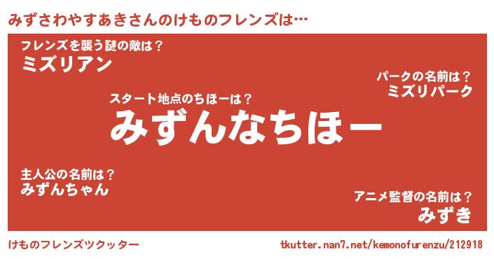 | 肩書あだ名 | 『みずさわやすあき国家主席』 |