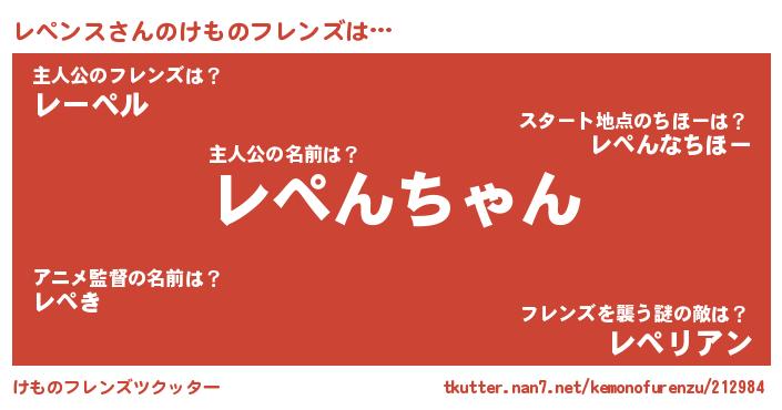 | 男性向けラノベタイトル風あだ名 | 『レペンススレイヤー』『レペンスの憂鬱』 |