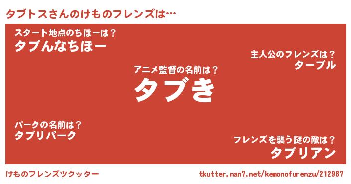 | 意味不明あだ名 | 『とにかく怪しいタブトス』 |