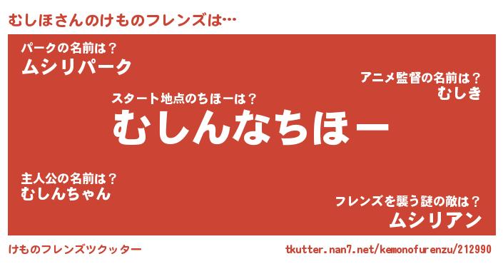 | 料理風あだ名 | 『むしほごはん』『むしほのトマト煮』 |