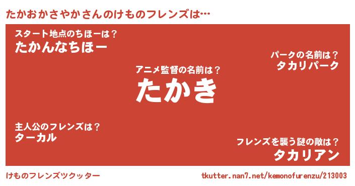| ピコ太郎風あだ名 | 『タカ一郎』『ピタ八郎』『タタ太郎』 |