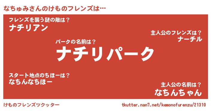 | 意味不明あだ名 | 『なめこ科なちゅみ属』『自称なちゅみ』 |