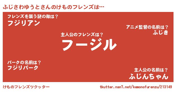 | 可愛いあだ名 | 『ふじぷりん』『ふじさわゆうとママ』 |