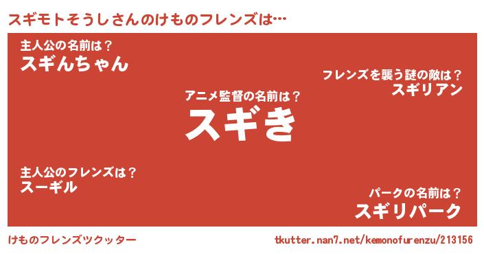 | 2回繰り返すあだ名 | 『うろうろ』『スギスギ』『ぽんぽん』 |