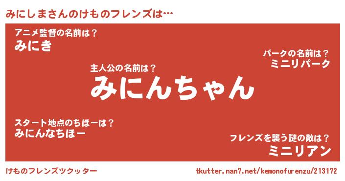 | 意味不明あだ名 | 『ヨモギ科みにしま属』『自称みにしま』 |