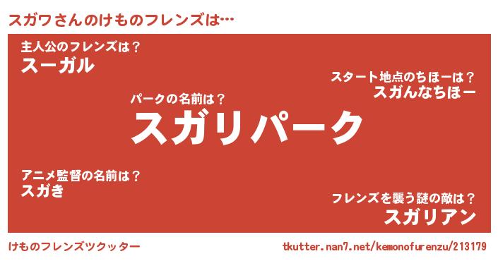 | 意味不明あだ名 | 『住所不定無職スガワ(2歳)』『自称スガワ』 |