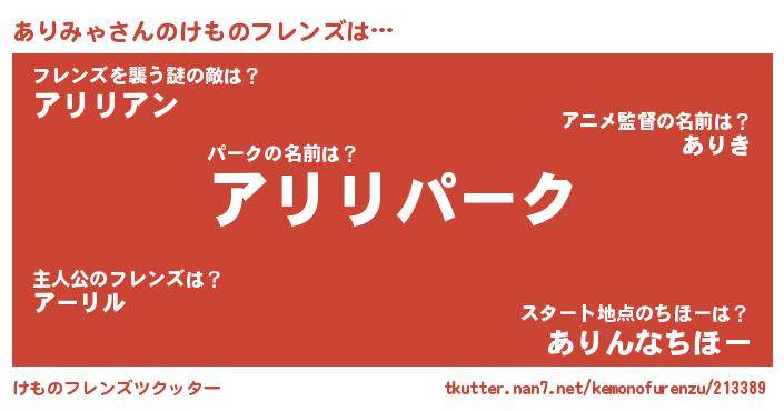 | 女子向けラノベタイトル風あだ名 | 『ありみゃアンティーク』 |
