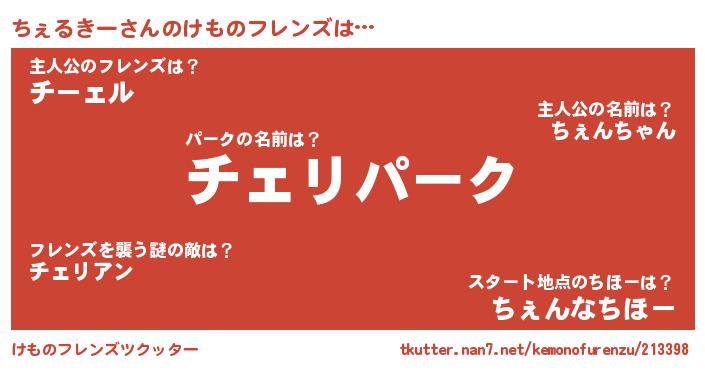 | 伝説のあだ名 | 『古より伝わる暗殺者ちぇるきー』 |