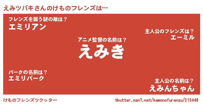 | 男性向けラノベタイトル風あだ名 | 『えみツバキの嫁は女の子じゃないと思った?』 |