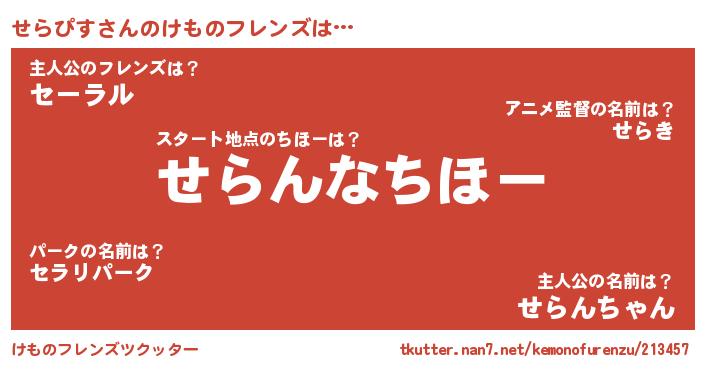 | 意味不明あだ名 | 『せらぴすフォーエバー』 |