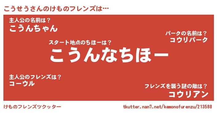| 2回繰り返すあだ名 | 『ここうう』『こうこう』『ぼやぼや』 |