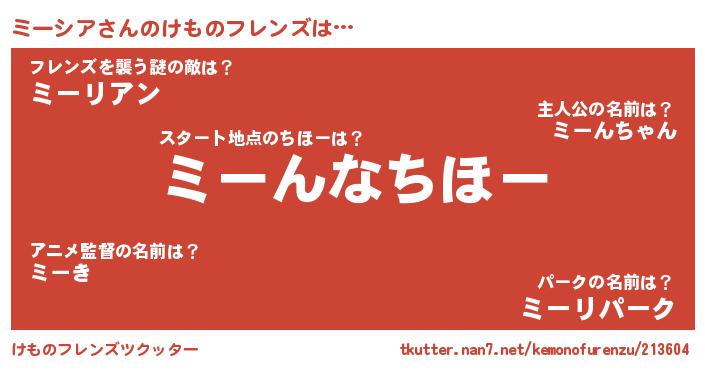 | 意味不明あだ名 | 『ミーシアフォーエバー』『自称ミーシア』 |