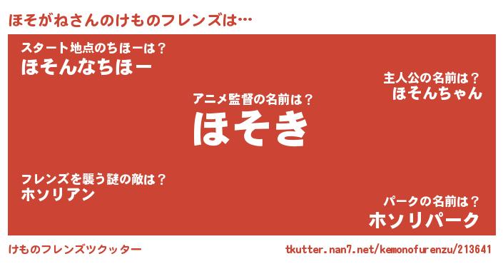 | 萌えアニメ | 主人公(ほそがね)のあだ名『ほそくん』 |