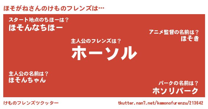 | 意味不明あだ名 | 『ヨモギ科ほそがね属』『自称ほそがね』 |