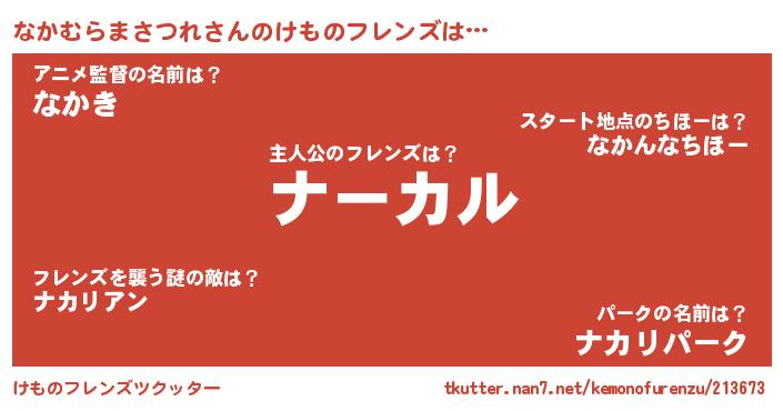 | 意味不明あだ名 | 『永久保存なかむらまさつれ』 |