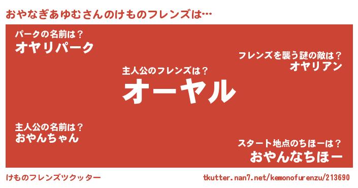 | ファンタジー風あだ名 | 『ユリオヤヴァット』『オヤディッシュ』 |