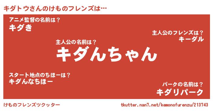 | 男性向けラノベタイトル風あだ名 | 『キダトウスレイヤー』『キダトウの憂鬱』 |