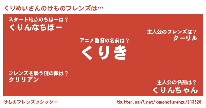 | 萌えアニメ | 主人公(くりめい)のあだ名『 くりてゅん』 |