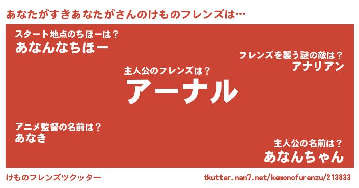 | ファンタジー風あだ名 | 『アナディッシュ』『カークアナラー』 |