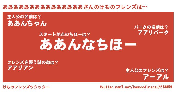 | 女子向けラノベタイトル風あだ名 | 『あああああああああああああああの雑貨屋さん』 |