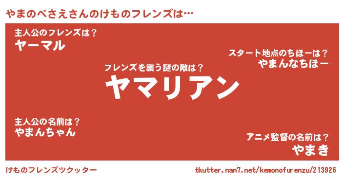 | 男性向けラノベタイトル風あだ名 | 『おまえをオタクにしてやるから、俺をやまのべさえにしてくれ! 』 |