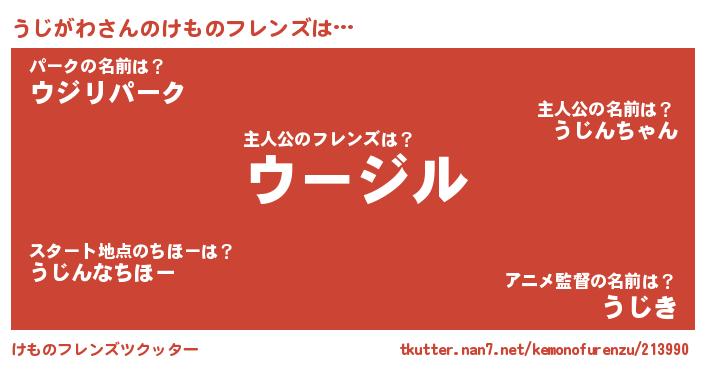 | ヘコむあだ名 | 『うじがわ(爆)』『うじお』 |