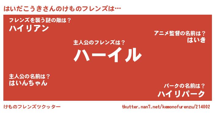 | ヒーロー風カッコイイあだ名 | 『ネオハイダコウキ』『銀牙騎士ハイ』 |