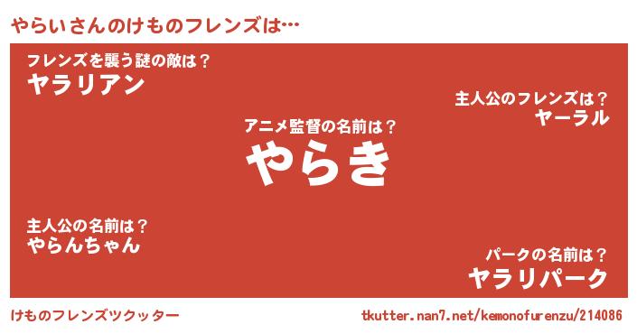 | 意味不明あだ名 | 『とにかく怪しいやらい』『自称やらい』 |