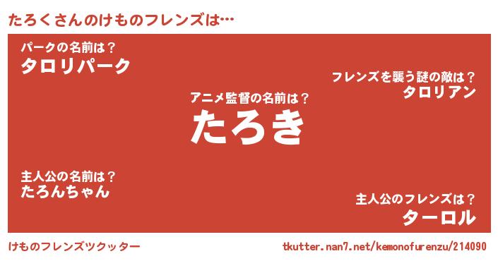 | 意味不明あだ名 | 『とにかく怪しいたろく』『自称たろく』 |