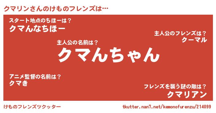 | ファンタジー風あだ名 | 『クマフェル』『エターナルクマリンー』 |